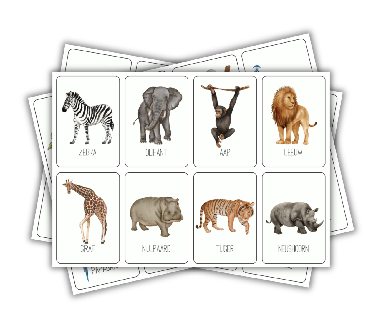 De kaarten bevatten kleurrijke illustraties van dieren, voorzien van duidelijke woordjes – perfect om gesprekken op gang te brengen.